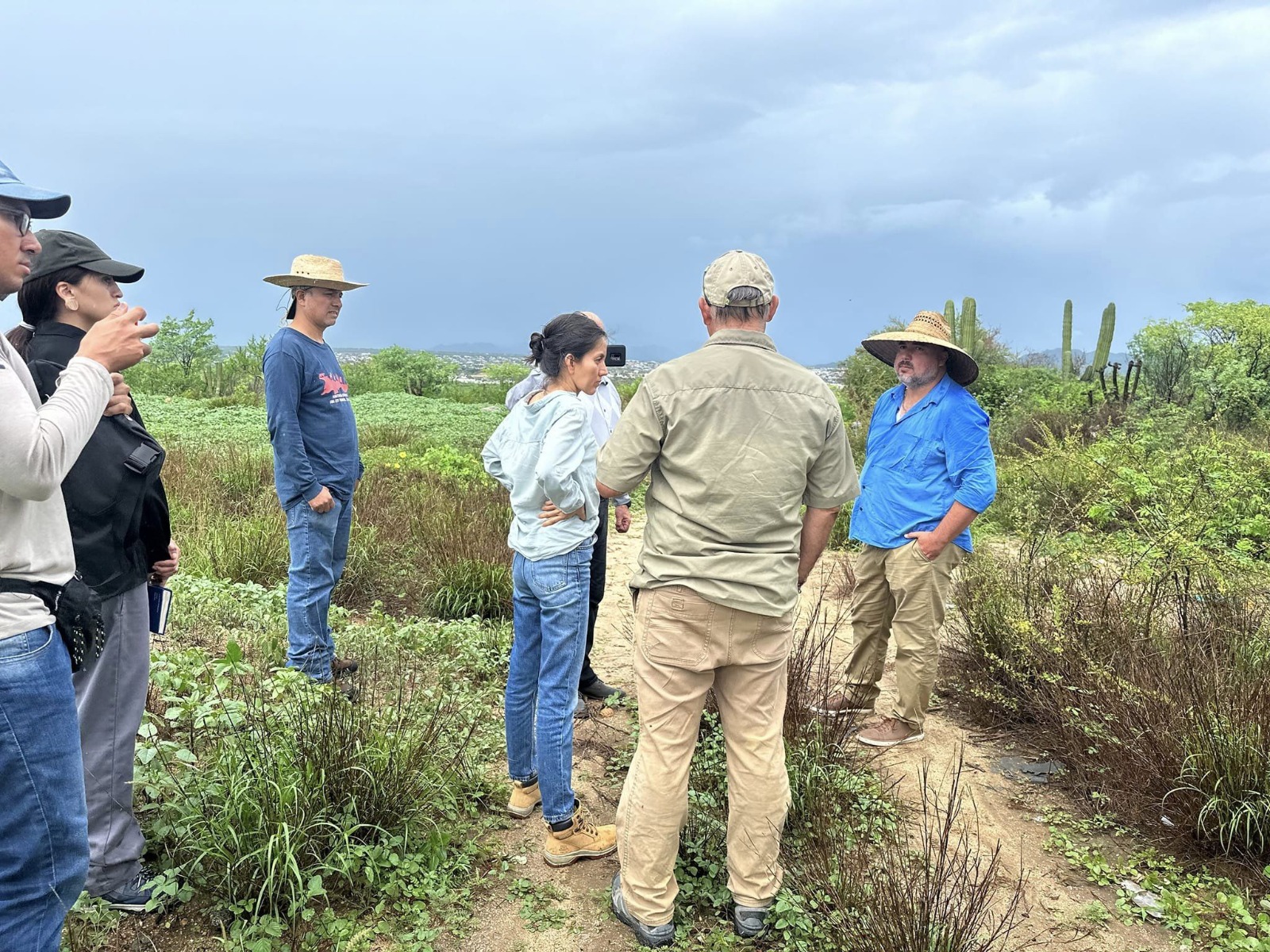 “Recorrimos con la empresa Cadebac, S.A. de C.V., que es la constructora de la planta desaladora, por los terrenos donde se va a hacer el tanque de entrega número 1 y sobre la carretera, además de la estación de bombeo número 2. Vinimos a revisar y dejar las coordenadas topográficas, a revisar la vegetación con el biólogo Asdrúbal, quien nos está haciendo la manifestación de impacto ambiental para el trasplante de la vegetación nativa, para que, una vez concluidos esos permisos iniciar el proceso de la obra”, explicó Igal Antonio Castro Castellanos.