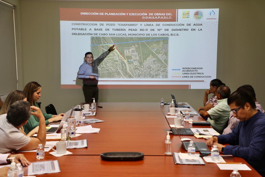 “Presentamos 2 proyectos: uno para el tema de la construcción del pozo El Chaparro #5, y su línea de conducción de agua potable en la delegación de Cabo San Lucas, con una inversión de $14 millones 884 mil 336.60 pesos, que incluye: la línea de alimentación eléctrica por el orden de 1,600 metros lineales; línea de conducción de tubería en 10 pulgadas por 1,116.53 metros lineales; el equipamiento de bombeo sumergible de 75 caballos; la subestación de 150 de Kva; la caseta de control y cloración, y la obra que permita resguardar el equipo sobre el arroyo Cabo San Lucas”, detalló Rodríguez Piña.