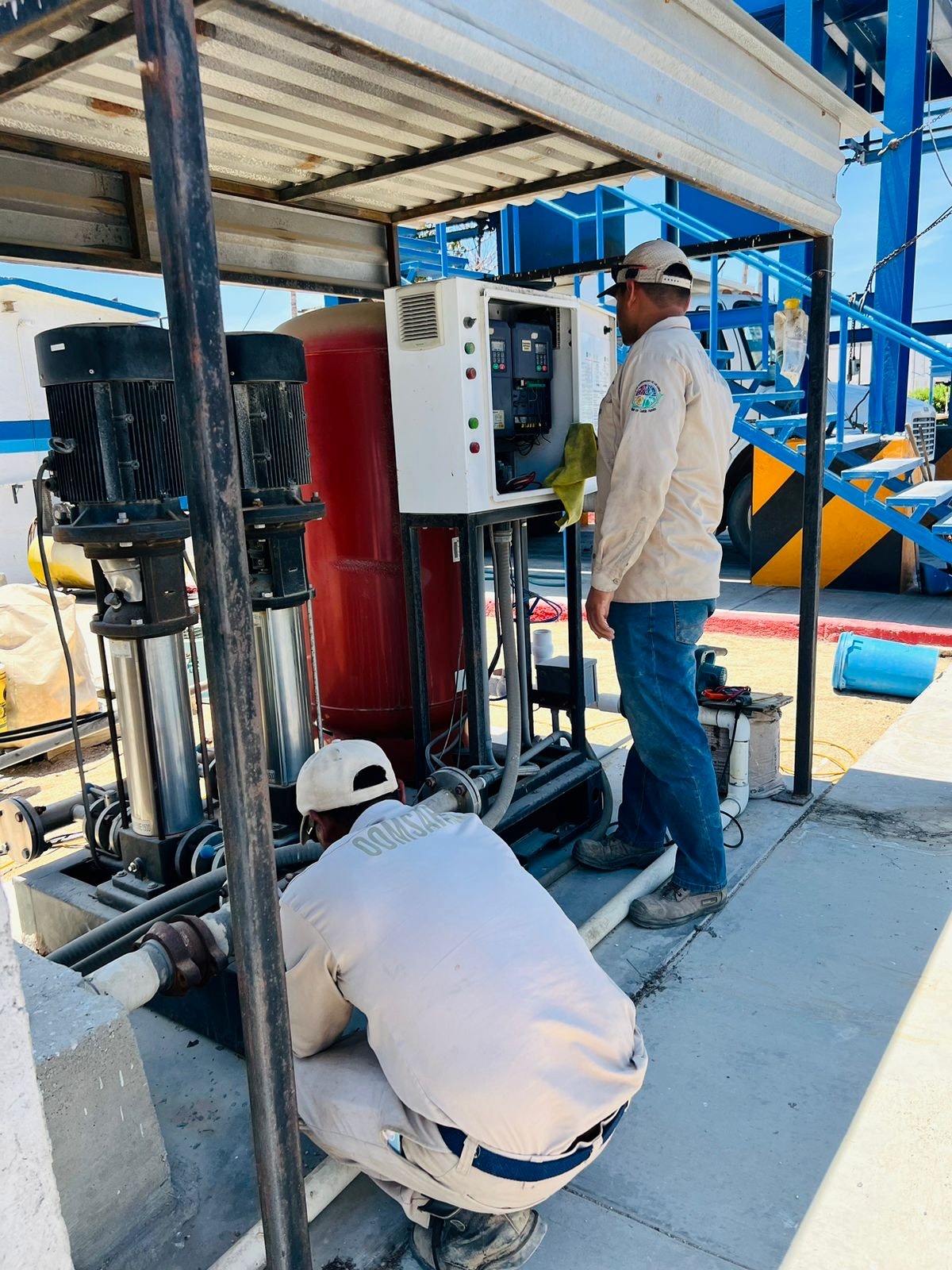 “Como primer paso es verificar las instalaciones electromecánicas que se encuentran al interior de la planta de tratamiento de RAIN, aquí se realiza la captación en una de las cisternas de agua tratada y se hace el rebombeo hacía la línea de distribución del agua del riego; es una trayectoria lineal con sus derivaciones o secciones y sus dispositivos de riego que son micro espesores o aspersores o riego por goteo en algunos de la localidad. El tema aquí es revisar lo electromecánico, posteriormente también la distribución hidráulica, revisar el estatus que guarda cada una de las instalaciones y proceder a la actividad realizando también los mantenimientos correctivos necesarios”, explicó José Ojeda García.
