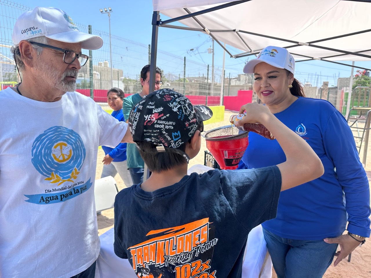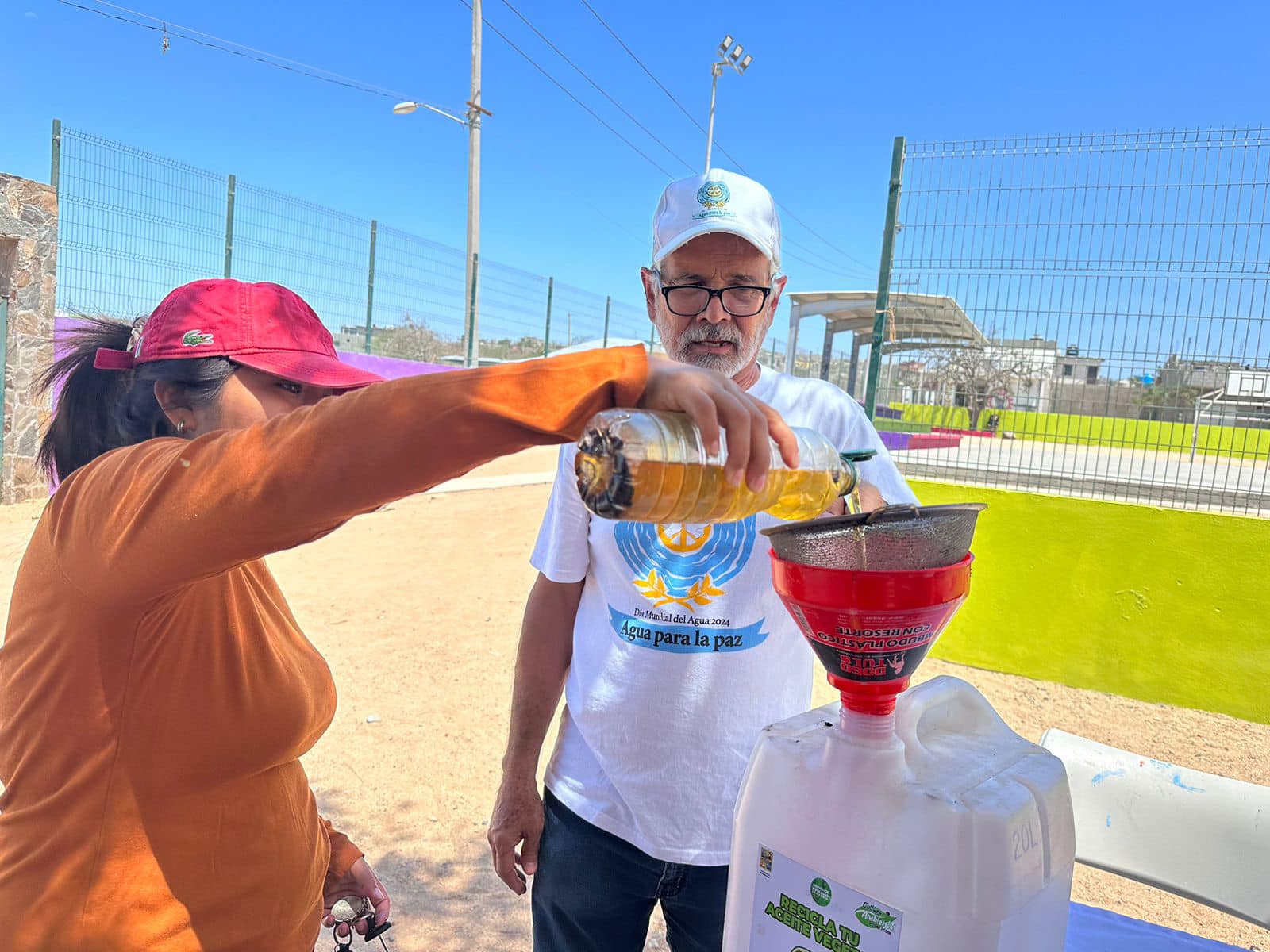 Los Cabos, B.C.S., 29 de junio.- Habitantes de La Ribera, Santiago, Miraflores, San José del Cabo y Cabo San Lucas, acudieron con sus botellas a los puntos de recolección que habilitó el equipo de la Dirección de Cultura del Agua de OOMSAPAS Los Cabos para depositar el "aceite vegetal comestible usado”, logrando recolectar a la fecha, 1,298 litros.