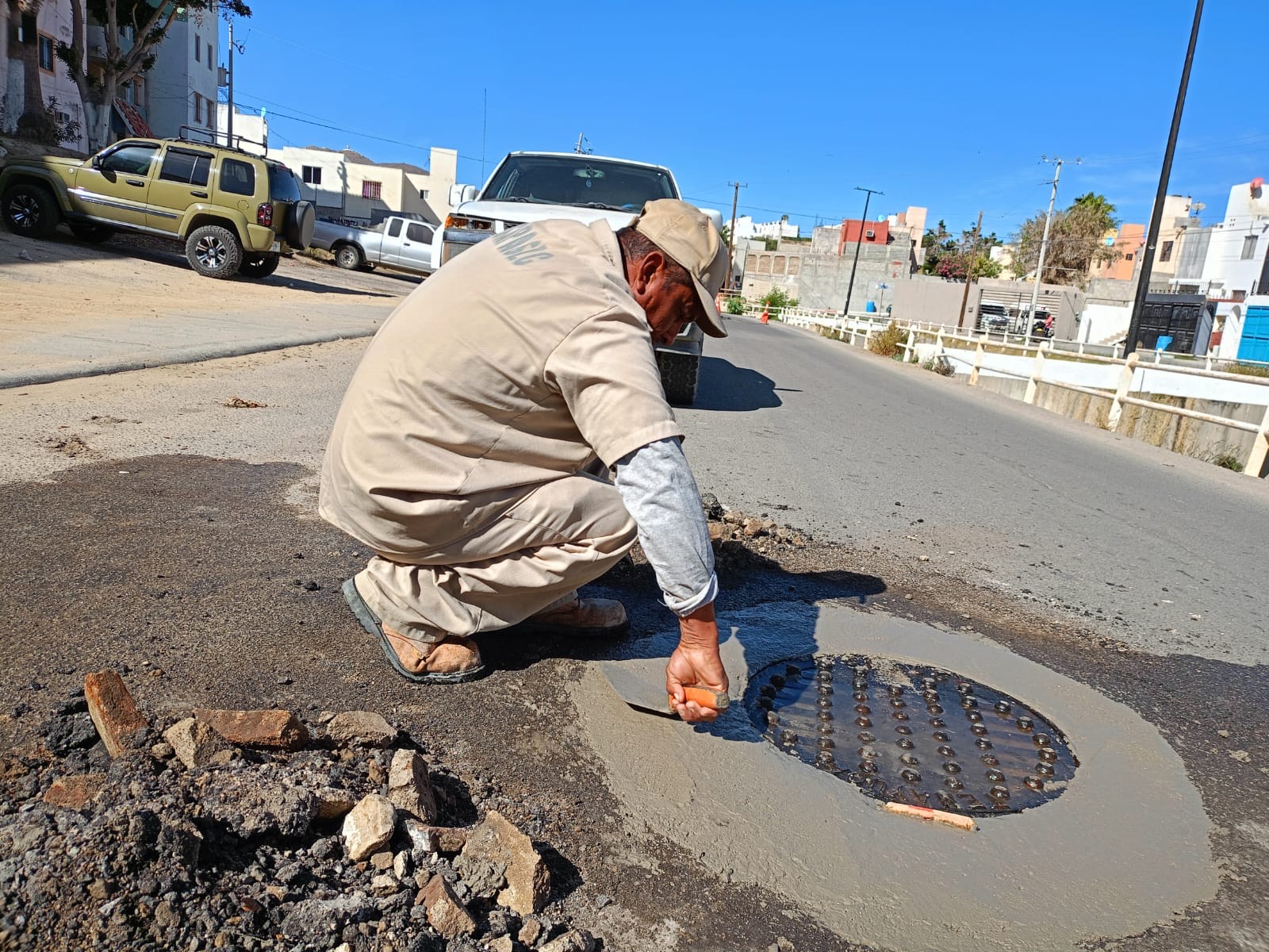 En lo que va del año 2024, se han reparado un total de aproximadamente 150 pozos de visita entre los cuales 23 son pozos rehabilitados completamente y los restantes se realizó el cambio de tapa en diversas zonas de la delegación de Cabo San Lucas.