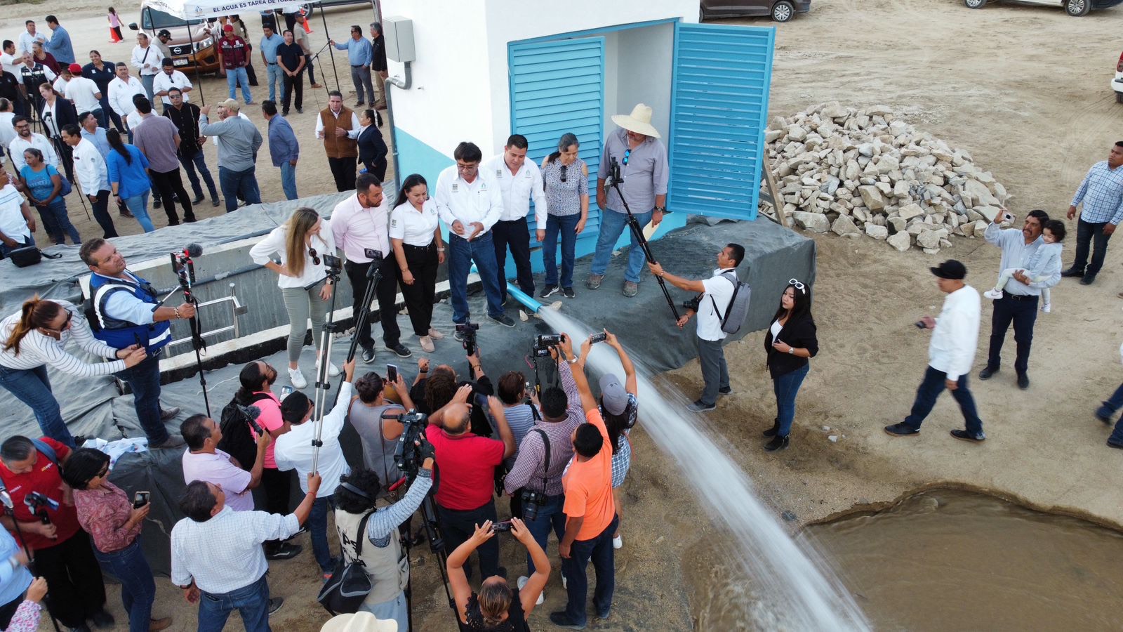 En un evento público, el edil cabeño Oscar Leggs Castro mencionó que son 53 litros por segundo que se incorporarán a la red hidráulica para poder reducir los días del tandeo de las zonas más altas de Cabo San Lucas.