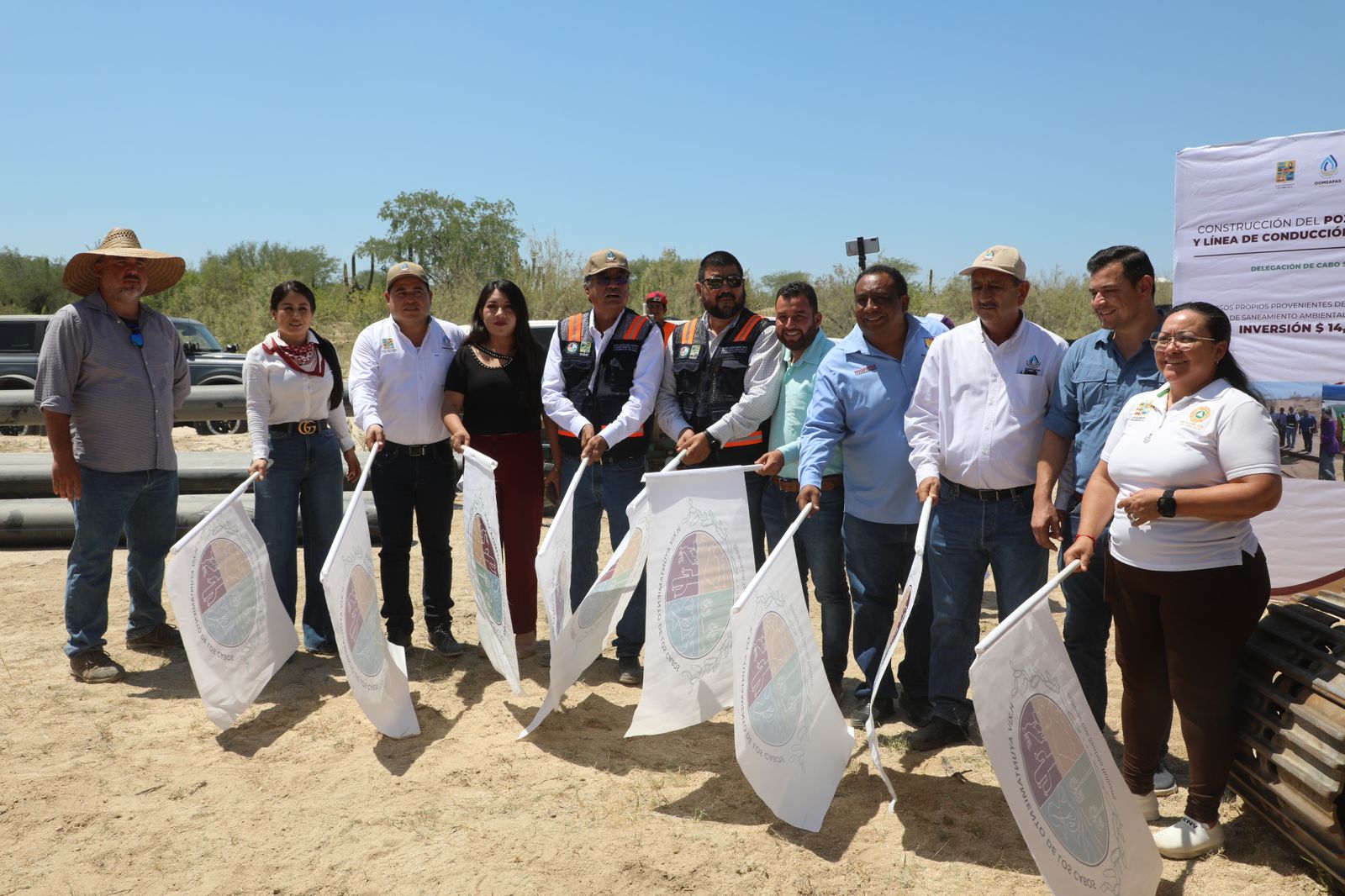 Los Cabos, B.C.S., 26 de septiembre 2023.- En cumplimiento a la palabra de dotar más agua a las colonias de la delegación de Cabo San Lucas, el presidente municipal de Los Cabos Oscar Leggs Castro y el equipo de Agua Potable en coordinación con la Dirección General de Obras Públicas y Asentamientos Humanos, dieron el banderazo de inicio a la obra de interconexión del pozo #5 “El Chaparro” a la red hidráulica, que beneficiará a 87 sectores que dependen de los acueductos de la delegación sanluqueña.