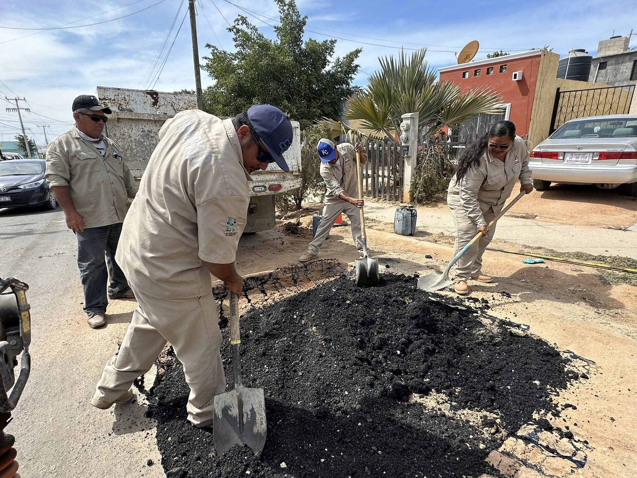 “Hoy nos encontramos en el fraccionamiento Palmas Homex, donde rehabilitamos 5 baches con asfalto, que se suman a los más de 850 baches en todo el municipio; también, continuamos trabajando con concreto hidráulico y atendiendo todas las avenidas de esta delegación de Cabo San Lucas”, explicó Glenda Santillán González.