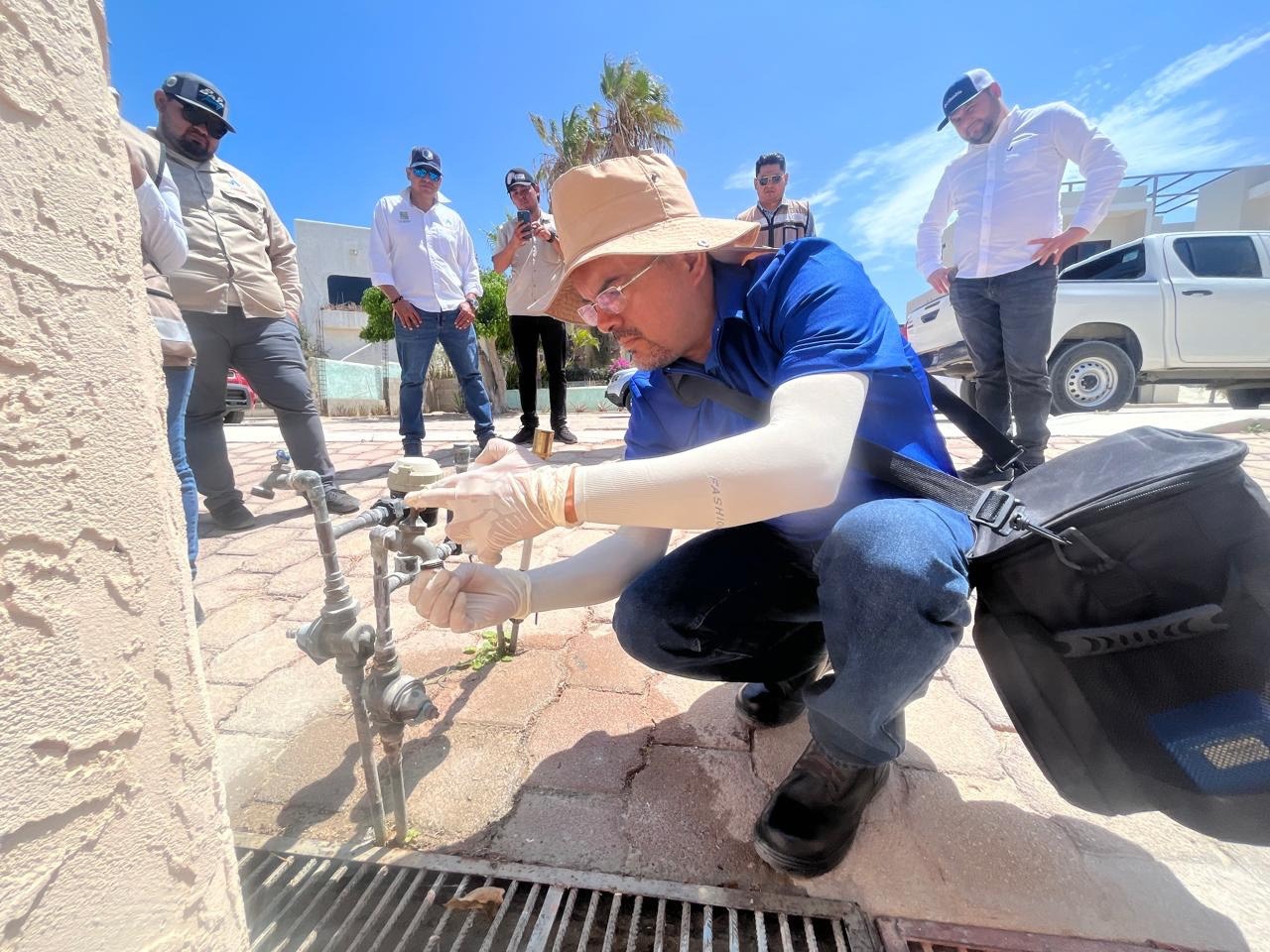Los Cabos, B.C.S., 18 de julio.- En seguimiento a los trabajos que se realizan para implementar el proyecto de Mejora Integral de Gestión (MIG), el cual mejorará la distribución y el suministro de agua potable en el municipio de Los Cabos, el equipo del Agua Potable a cargo del Ingeniero Ramón Rubio Apodaca en compañía de la empresa Aqualia, y personal de un laboratorio certificado, realizaron un recorrido y toma de muestras por los sectores pilotos que se están considerando para llevar a cabo el cumplimiento del proyecto y mejorar el servicio de agua potable.