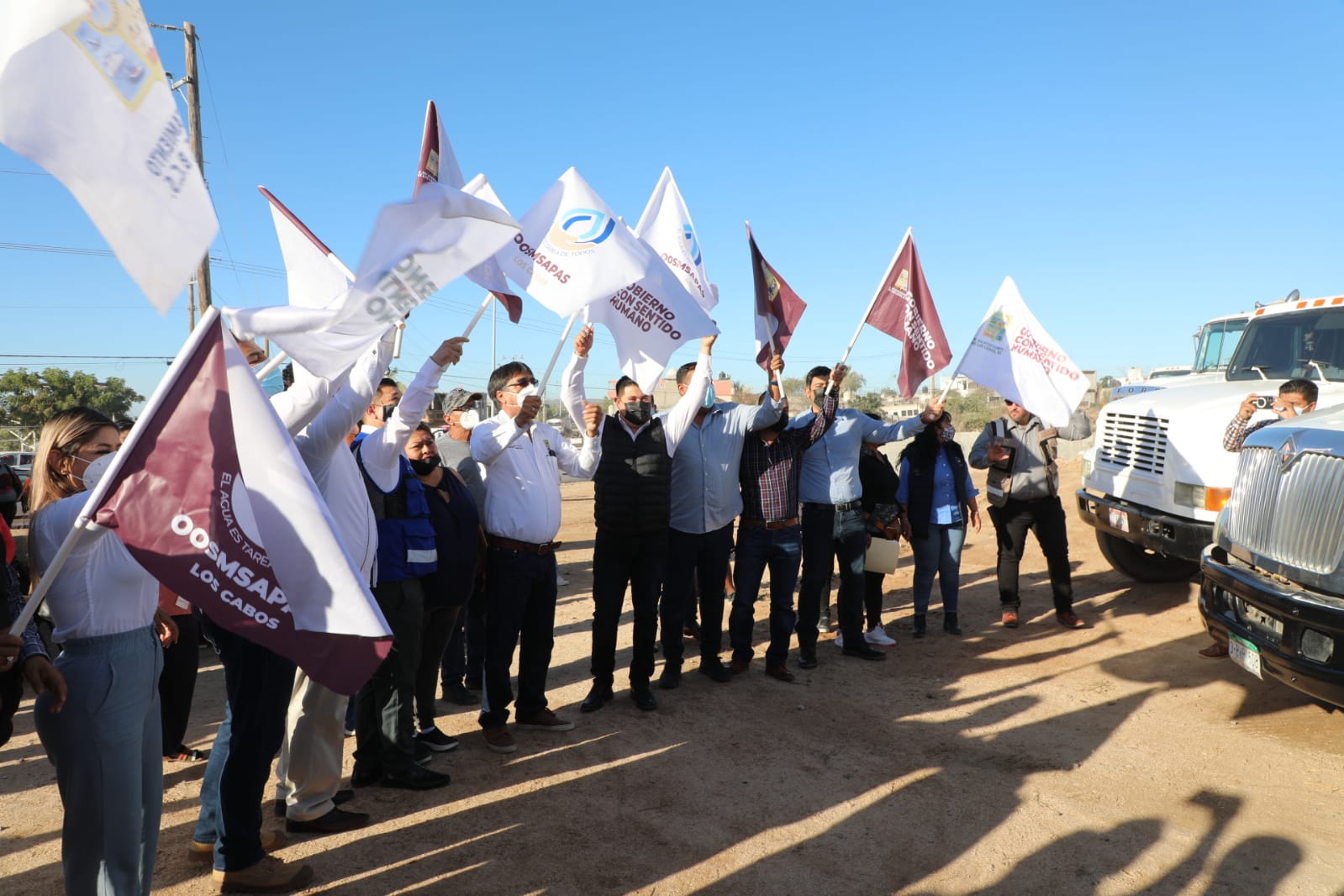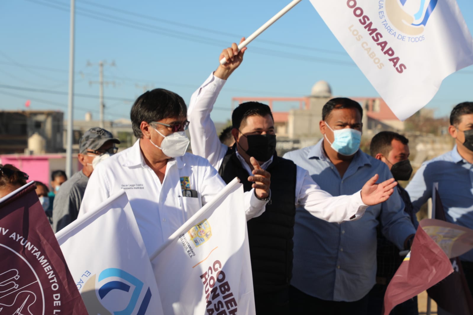 Los Cabos, B.C.S., 01 Feb.- . Con el fin de garantizar que las familias que no tienen acceso a la red de agua potable en Cabo San Lucas sean beneficiadas con agua potable, la XlV Administración que preside Oscar Leggs Castro y el Organismo Operador Municipal del Sistema de Agua Potable, Alcantarillado y Saneamiento de Los Cabos que dirige Ismael Rodríguez Piña, dieron el banderazo