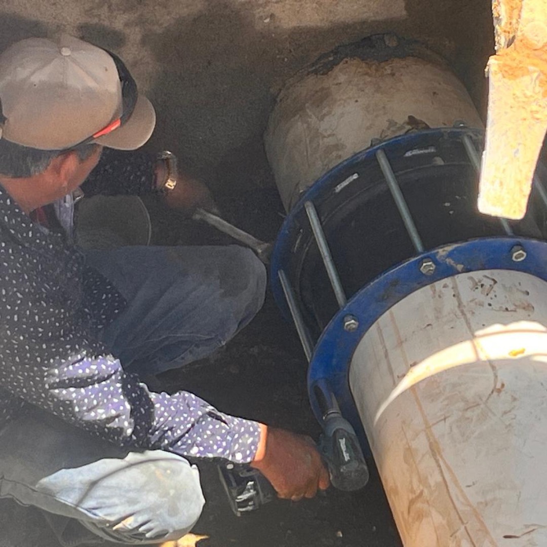 Los Cabos, B.C.S., miércoles 15 de mayo 2024.- Luego de que se presentara una fuga en el acueducto de la planta desalinizadora de Cabo San Lucas, -en el tramo que va del Tanque 1 a la estación de bombeo número 2(eb2)-, a la altura de la colonia Los Cangrejos, el equipo de la Coordinación de Operación y Mantenimiento realizó las maniobras de trabajo correspondientes para restablecer el servicio a las colonias que se vieron afectadas.