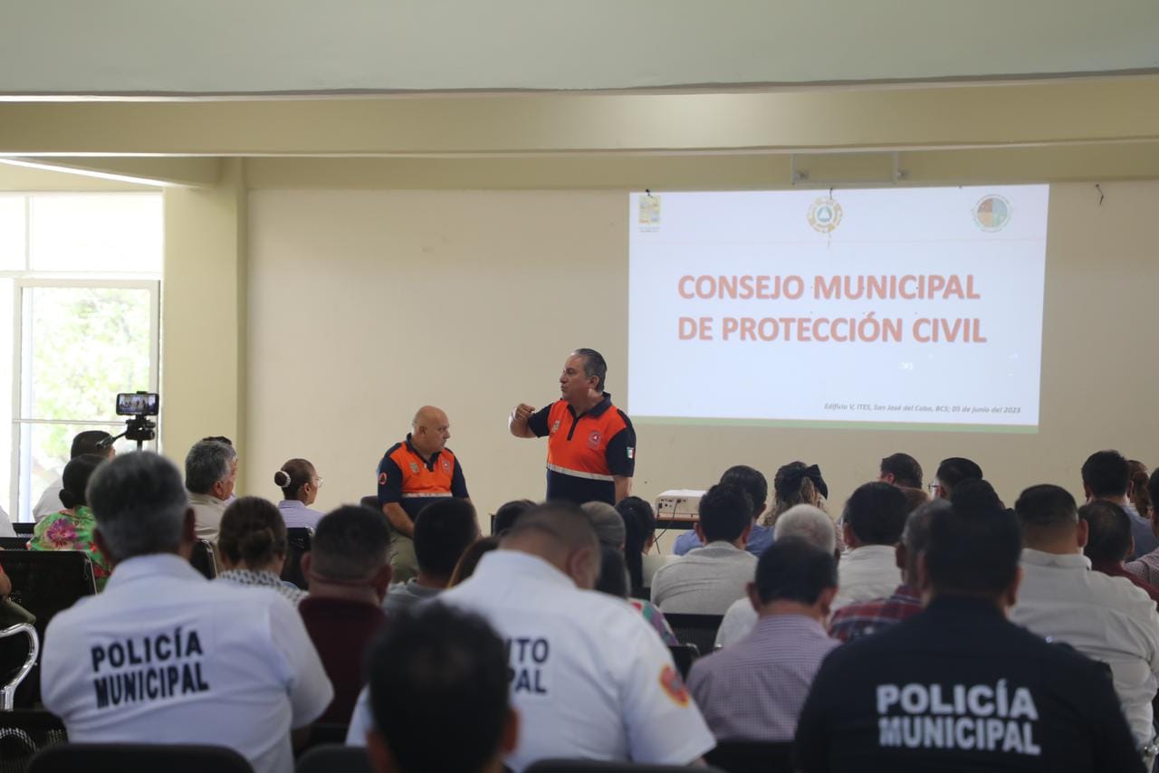 Los Cabos, B.C.S., 06 de junio 2023.- Durante el Consejo Municipal de Protección Civil, encabezado por el secretario general del Ayuntamiento de Los Cabos, Ariel Castro Cárdenas, el director general de Agua Potable, Ismael Rodríguez Piña, aseguró que el Organismo Operador juega un papel fundamental, antes, durante y después de los fenómenos hidrometeorológicos, por lo que están previendo todas las acciones que permitan mantener la infraestructura en las mejores condiciones y garantizar el suministro de agua.