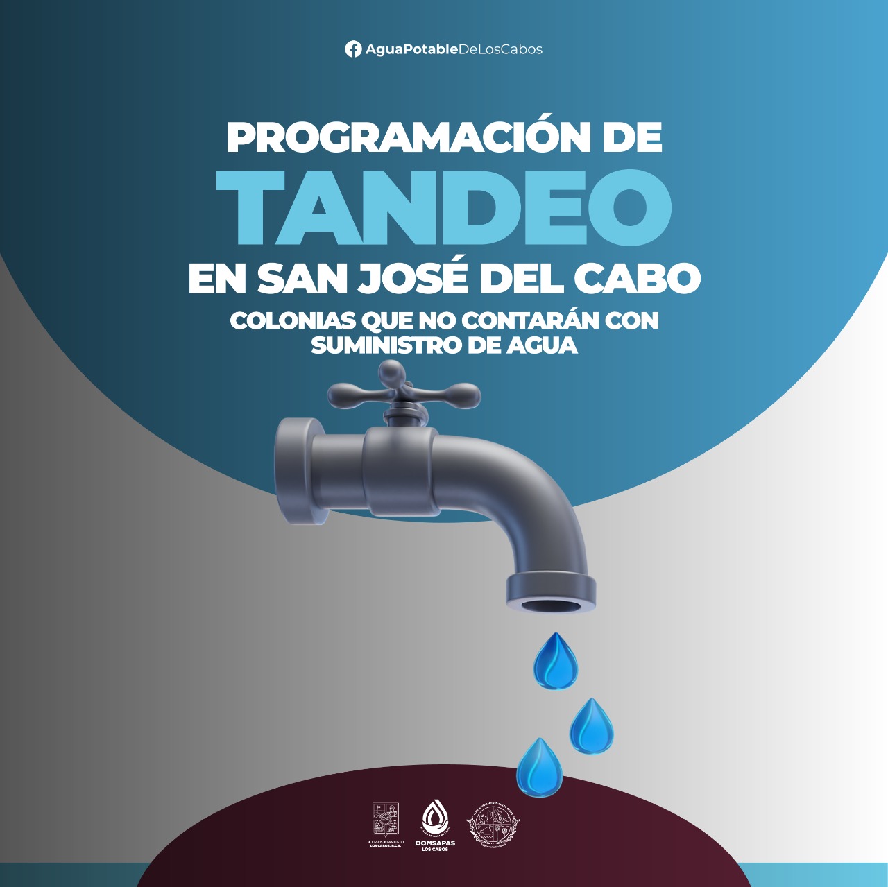 Para mayor información respecto a ambos tandeos, la ciudadanía puede visitar la página de Facebook: https://www.facebook.com/OomsapasLosCabosOficial o la página web: https://aguapotabledeloscabos.gob.mx/.