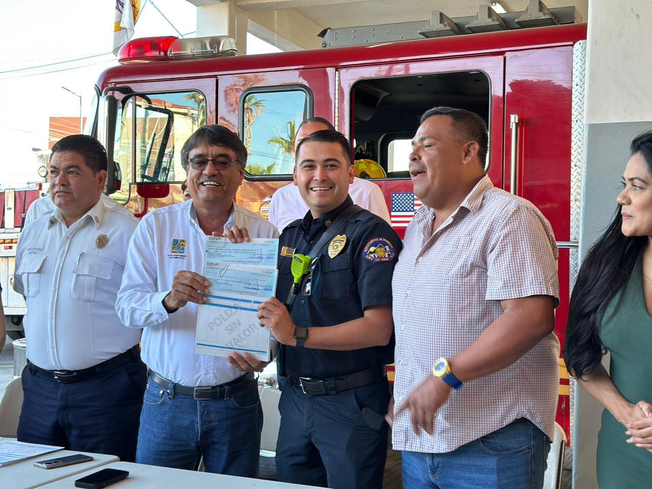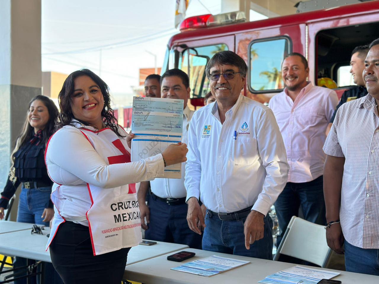 Los Cabos, B.C.S., 22 de enero 2024.- Gracias al pago oportuno de las personas usuarias del servicio de agua potable en Los Cabos, el alcalde del XIV Ayuntamiento de Los Cabos, Oscar Leggs Castro, realizó la entrega del recurso económico al H. Cuerpo de Bomberos del Municipio y a la Benemérita Cruz Roja Nacional, con el objetivo de garantizar que los cuerpos de emergencia cuenten con el recurso para realizar sus actividades.