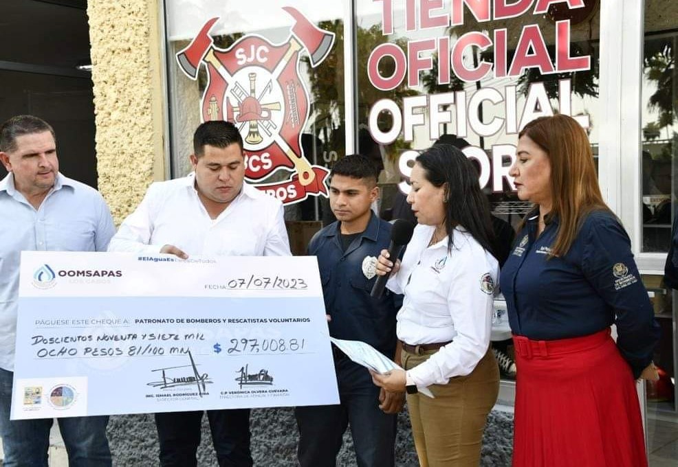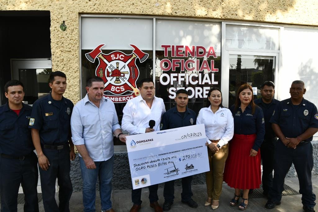 Los Cabos, B. C.S., 10 de julio 2023.- Como resultado de la aportación voluntaria que realizan los usuarios de Agua Potable de Los Cabos, el director general del Organismo Operador, Ismael Rodríguez Piña, la Administradora, Verónica Olvera Guevara y el comisario, Manuel Castro Ceseña, hicieron entrega del recurso económico bimestral, al personal de la Benemérita Cruz Roja Mexicana y al Departamento de Bomberos por la cantidad de $594 mil 017.57 pesos.