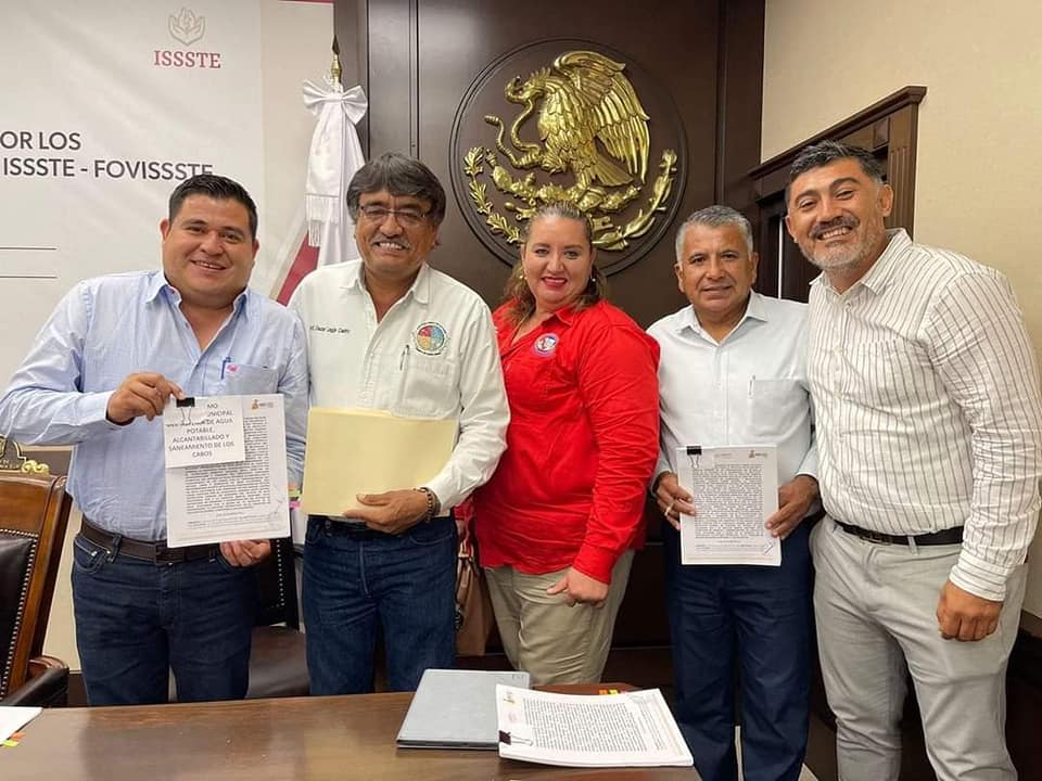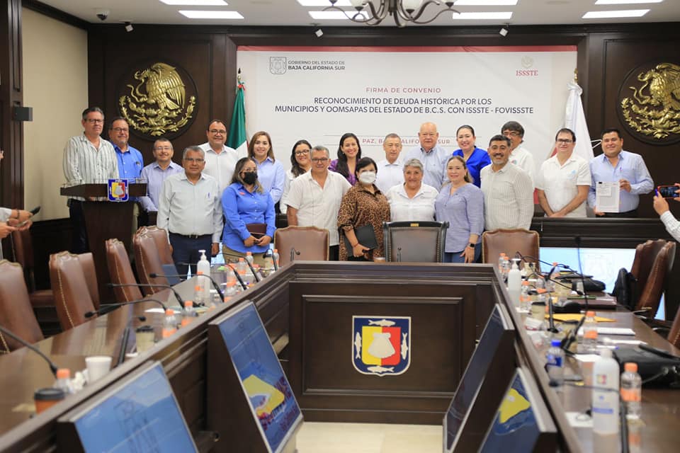 Los Cabos, B.C.S., 17 agosto 2022.- El presidente municipal de Los Cabos, Oscar Leggs Castro, acudió a la firma de convenio de reconocimiento de la Deuda Histórica por los Municipios y Oomsapas del estado de Baja California Sur con ISSSTE-FOVISSSTE, la cual representa una primera etapa para comenzar a realizar los pagos al Instituto de Seguridad y Servicios Sociales de los Trabajadores del Estado (ISSSTE), ya que hasta el momento el monto total es de $272 millones de pesos.