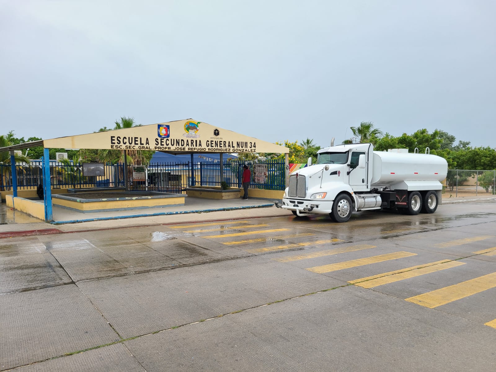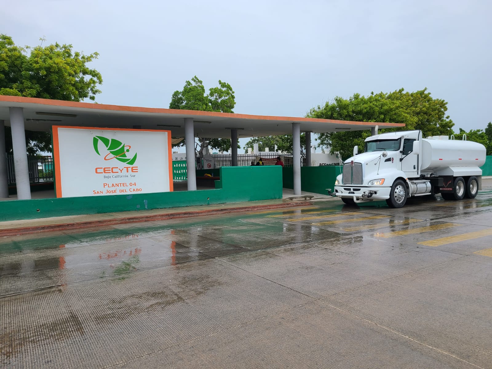 En cuanto al apoyo que se brindó en las escuelas que se habilitaron como refugios temporales por el huracán “Norma” en Cabo San Lucas, San José del Cabo y zona norte, se les dotó de las plantas de emergencia y el suministro de agua potable a través de pipas para las cisternas ubicadas en los refugios; además del apoyo que brindó el equipo de Comisaría, Recursos Humanos, Cultura del Agua y Comercialización para recibir a las personas en la Telesecundaria #42 Braulio Maldonado Sández, ubicada en la comunidad de La Playa, San José del Cabo.