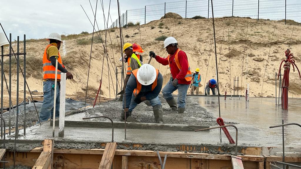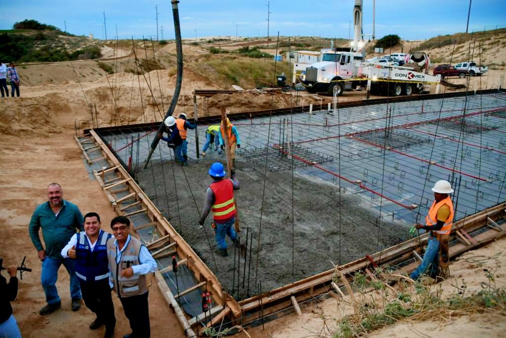 Los Cabos, B.C.S., viernes 22 de diciembre 2023.- El alcalde de Los Cabos, Oscar Leggs Castro y el equipo de Agua Potable que dirige Ismael Rodríguez Piña están cerrando fuerte este año 2023 con la entrega de obras y con los trabajos de concreto hidráulico de la segunda planta desaladora de 250 litros por segundo, ubicada en la delegación de Cabo San Lucas.