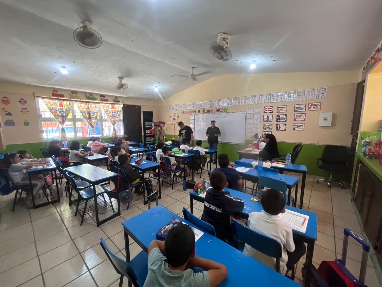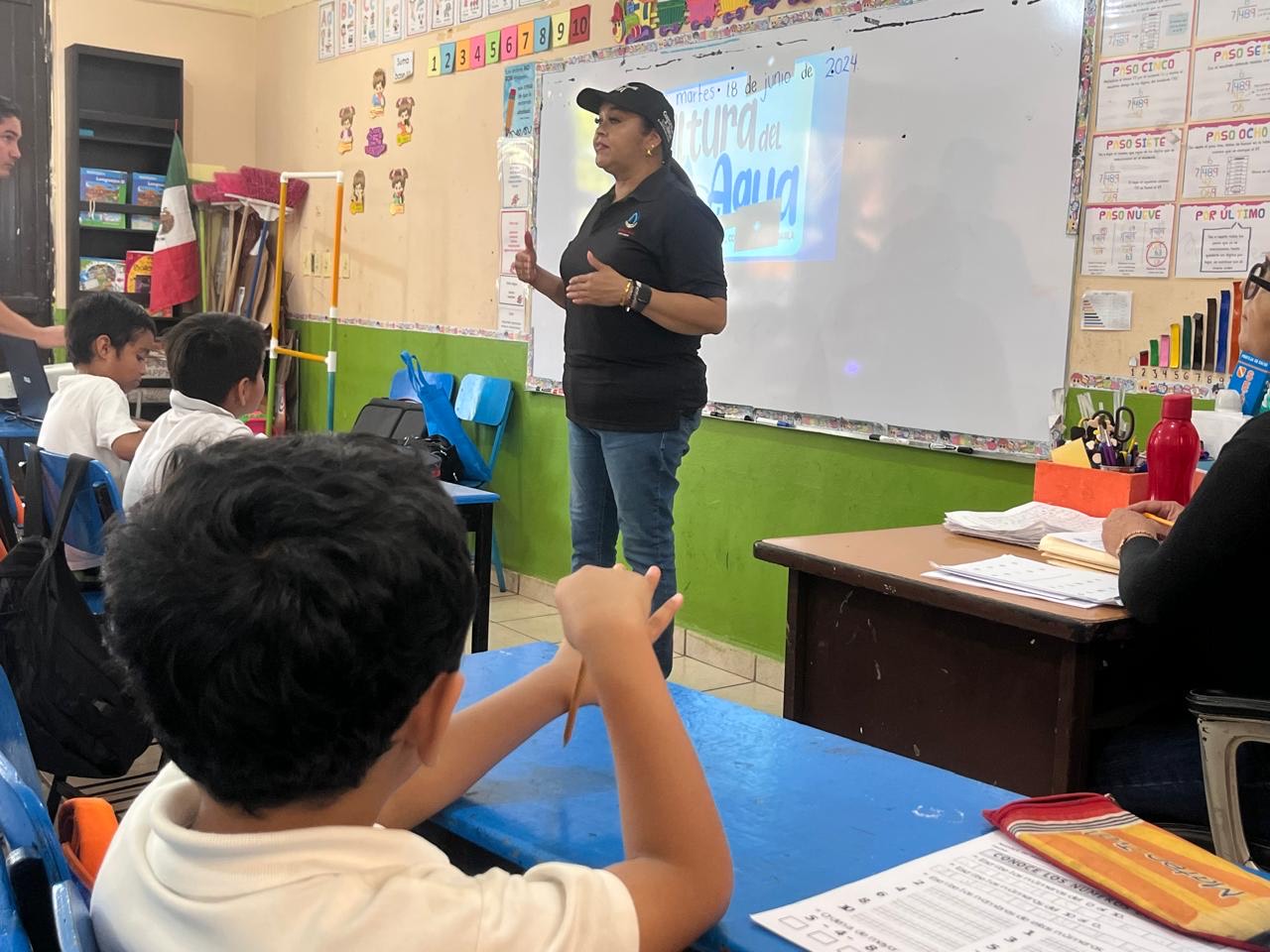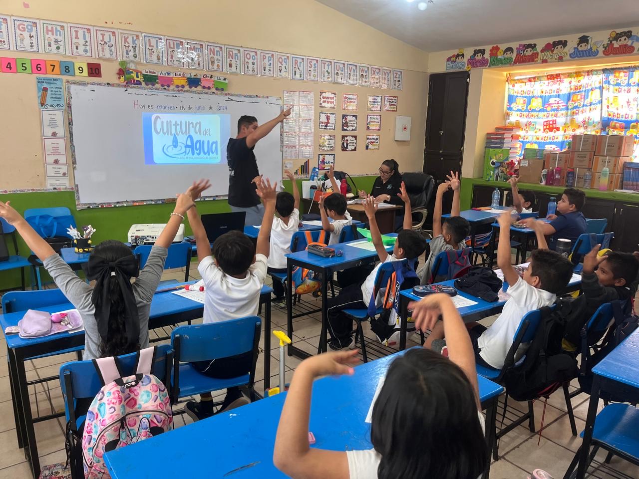 “Estamos en la escuela León Cota Collins vamos atender aproximadamente 15 grupos, estamos pasando grupo por grupo para hablarles sobre la importancia del agua, el cuidado del agua, el agua en tu cuerpo, el ciclo urbano para los más grandes, y la verdad que hemos tenido buena respuesta, los niños están muy interesados en cuidar el agua en todo momento”, refirió Cristina Núñez.