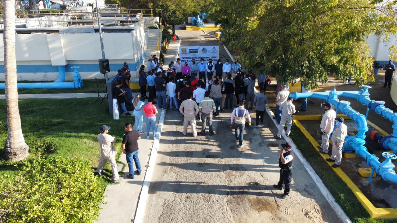 Los Cabos, B.C.S., 08 mayo del 2022.- El banderazo de inicio para la operación de la Planta de Tratamiento de Aguas Residuales (PTAR) por parte del Oomsapas Los Cabos y de Servicios Públicos, se considera un hecho histórico para las familias del municipio, a quienes el alcalde Oscar Leggs Castro les dio respuesta con la intervención del Ayuntamiento, para resolver la emergencia sanitaria que generan los malos olores de la PTAR.