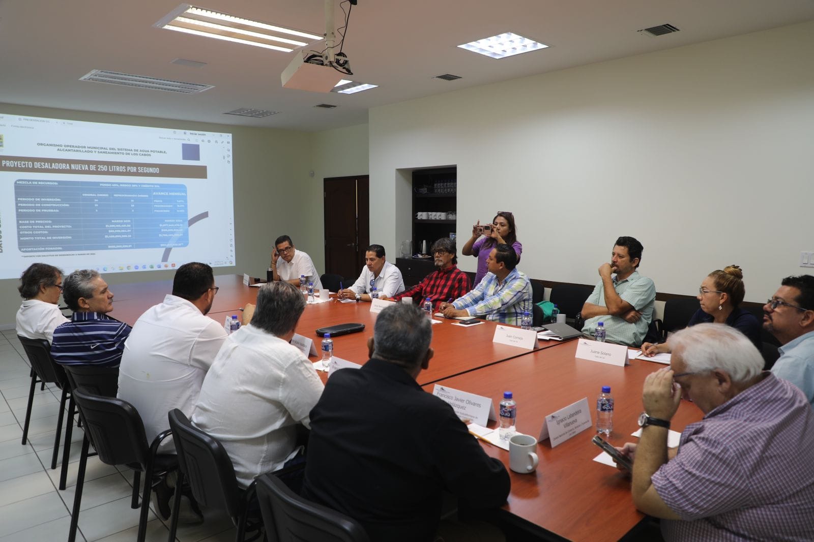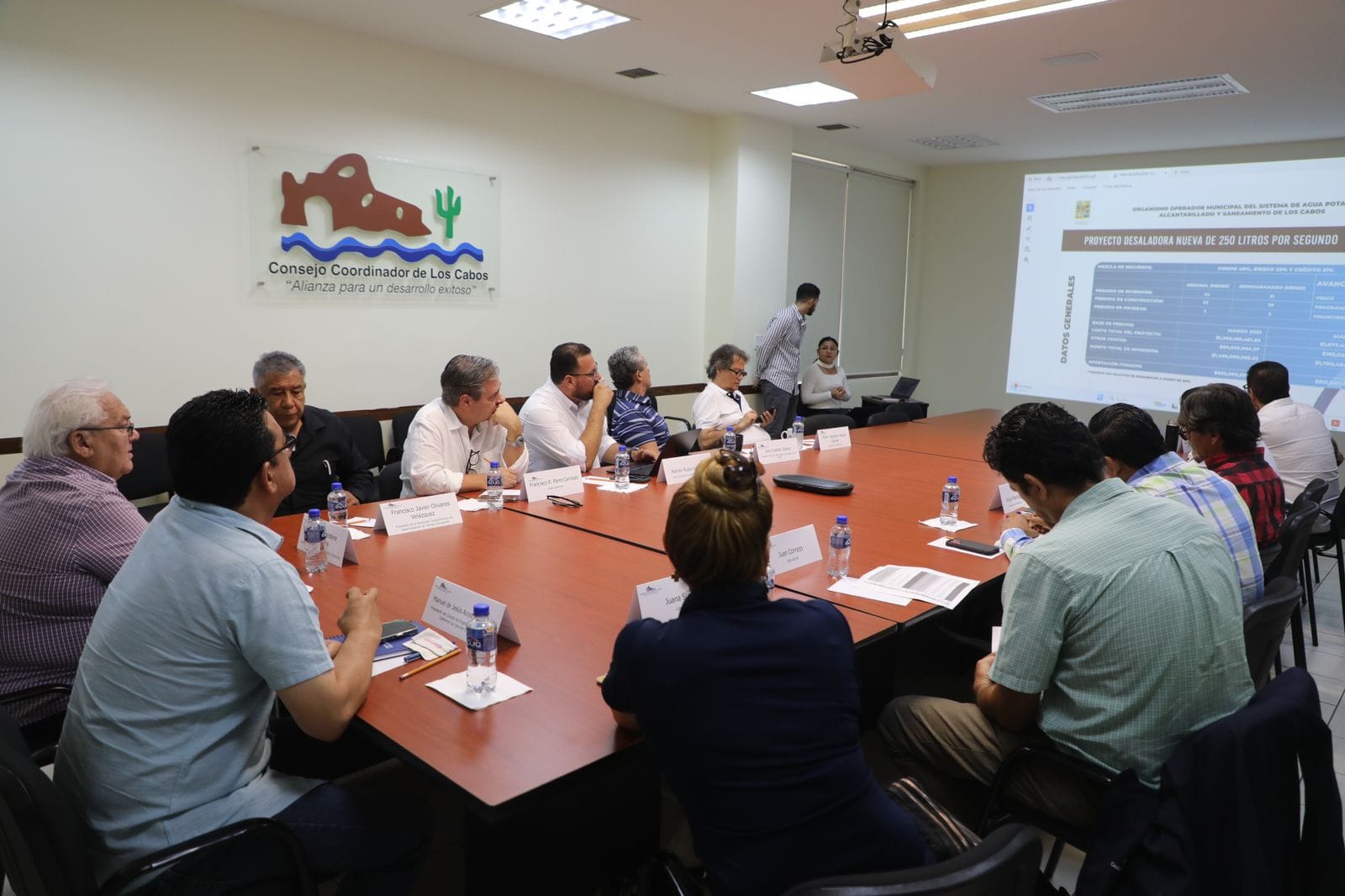 También durante el encuentro con empresarios locales y autoridades municipales, se dio a conocer el estado actual de la producción del vital líquido en los pozos, acueductos y la planta desaladora #1 de Cabo San Lucas, que son las fuentes de abastecimiento que suministran a toda la población; además se presentó el nivel en el tratamiento de las aguas residuales y el rehúso de las mismas, temas que van de la mano con los procesos de abastecimiento en un futuro de la nueva planta desaladora en Cabo San Lucas.
