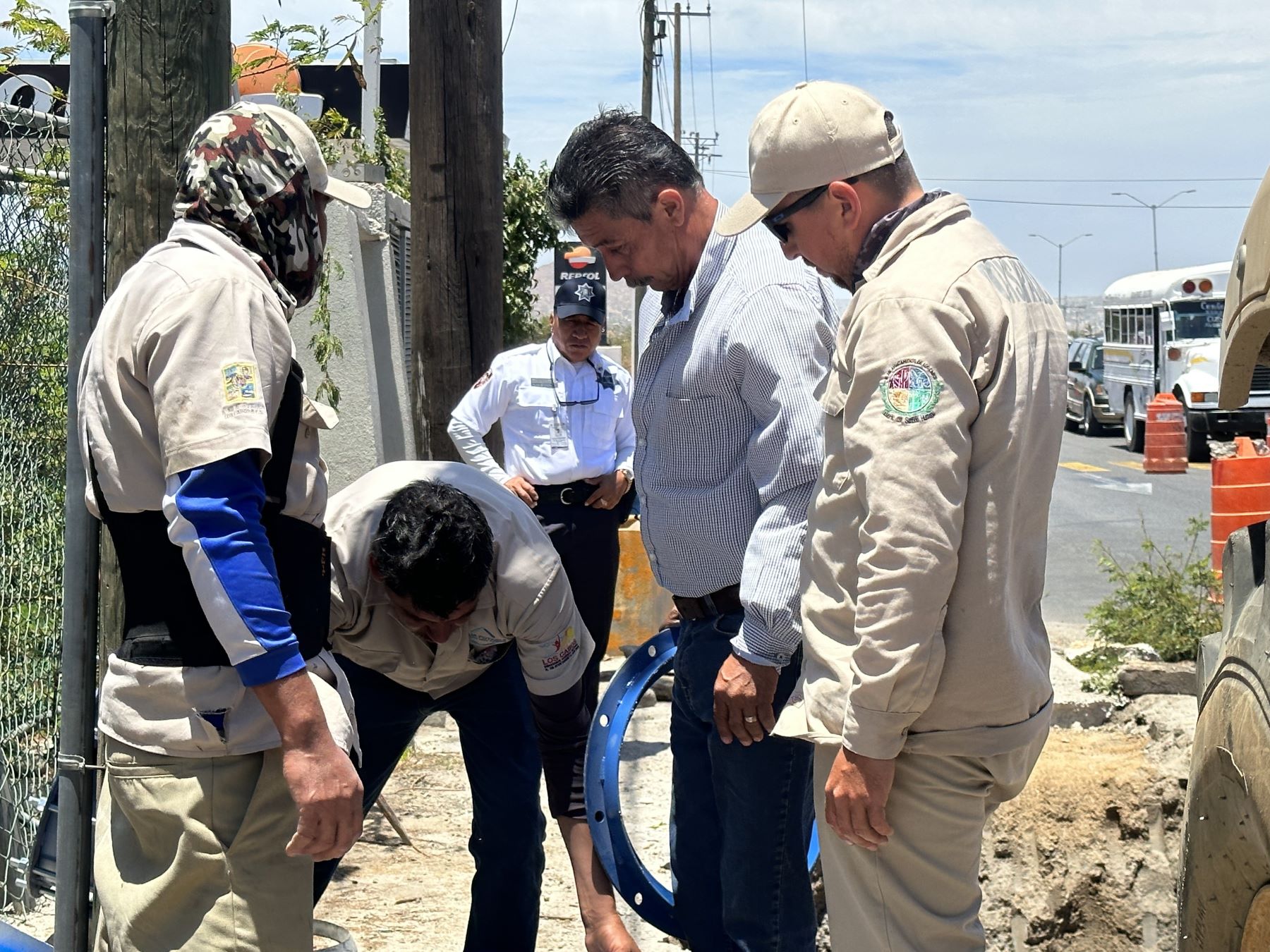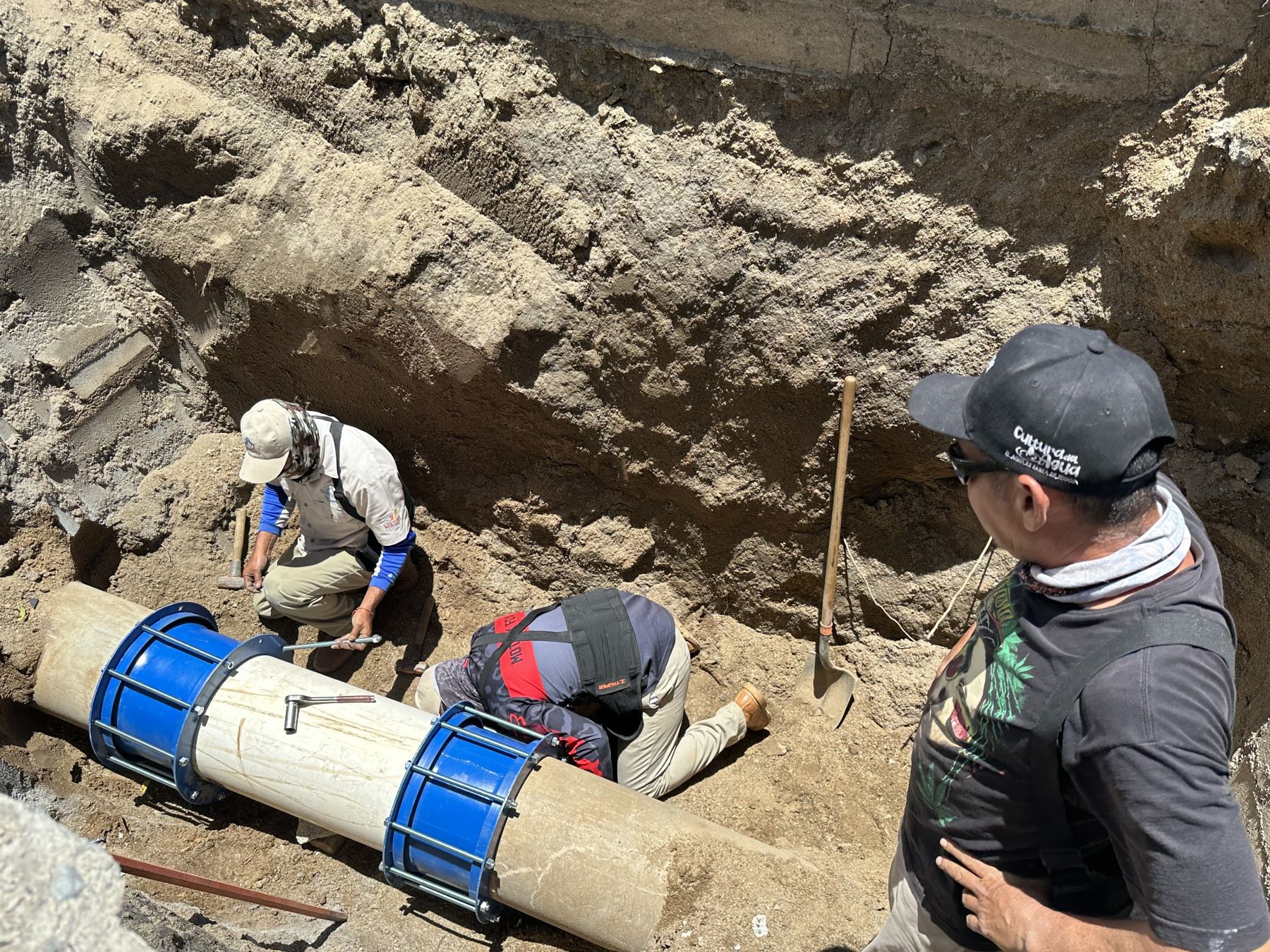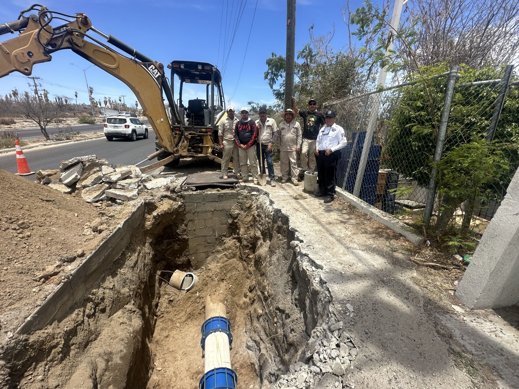 Los Cabos, B.C.S., lunes 22 de mayo 2023.- Con el propósito de evitar afectaciones en el tandeo de agua potable en la delegación de Cabo San Lucas, el equipo de Agua Potable de Los Cabos, realizó la reparación de una fuga en el acueducto #1 Cabo Bello-Cárcamo de Matamoros a la altura del Costco.