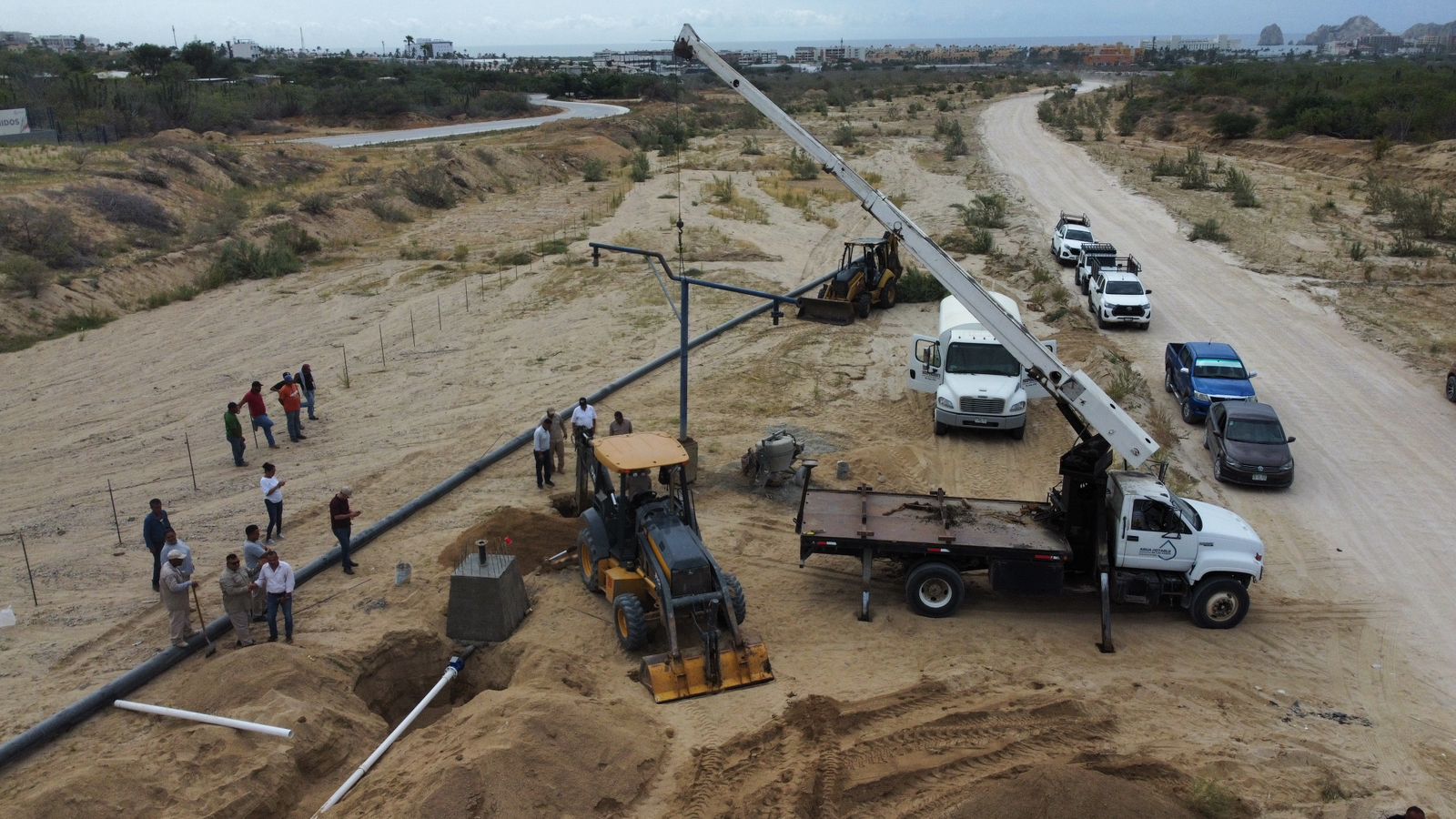Cabe destacar que los trabajos se habían proyectado para seis semanas, sin embargo, debido a la gran demanda y necesidad de agua potable, se hizo una reingeniería para que los trabajos culminen en cuatro semanas, y se pueda ver en la disminución de los tiempos de tandeos de agua potable en las zonas más altas de Cabo San Lucas.