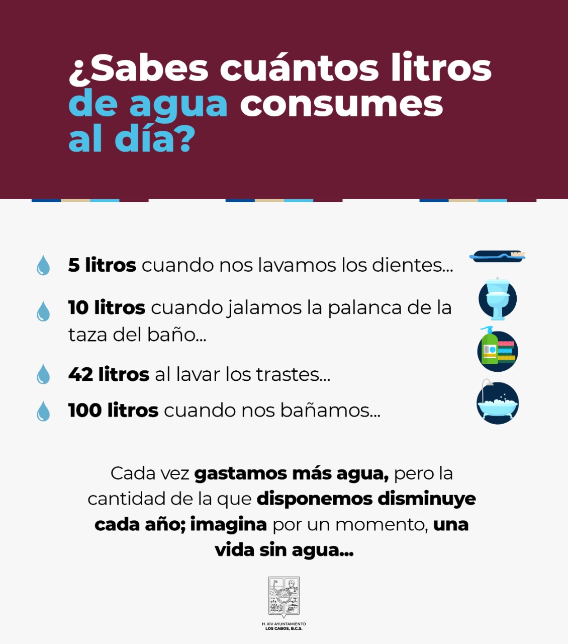 Por tal motivo exhortan a la ciudadanía a crear conciencia y contribuir en el buen uso del vital líquido, a fin de garantizar que la población disponga de un mejor servicio, ya que al cambiar los hábitos cotidianos se ahorrarían miles de litros que se pueden aprovechar para las colonias e instituciones públicas a las que se les suministra gratuitamente el agua.
