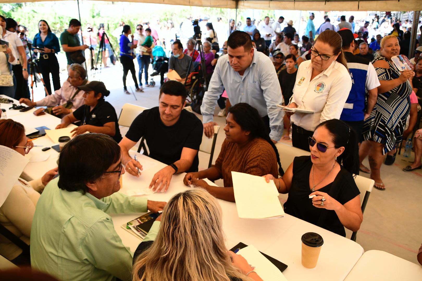 Los Cabos, B.C.S., jueves 23 de noviembre 2023.- Con el propósito de atender y darle solución a las solicitudes de habitantes de Cabo San Lucas, en temas relacionados con el servicio de agua potable, el equipo del Oomsapas que dirige el ingeniero Ismael Rodríguez Piña participó en la 23º Audiencia Pública encabezada por el presidente municipal Oscar Leggs Castro, que se desarrolló en la colonia Mesa Colorada etapa 3.