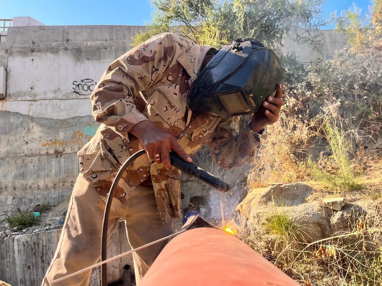 Los Cabos, B.C.S., 12 de junio.- Luego de que personas externas al Oomsapas Los Cabos, ocasionaron un incendio dañando el emisor de aguas negras PTAR RAIN-Cárcamo de Lagunitas de 12 pulgadas de material Polietileno de Alta Densidad (PEAD), en la zona de arroyo, abajo del puente 2015, nuestro equipo de la Coordinación de Operación y Mantenimiento en Cabo San Lucas realizó los trabajos de sustitución de 30 metros de la tubería de plástico por acero cedula 40.