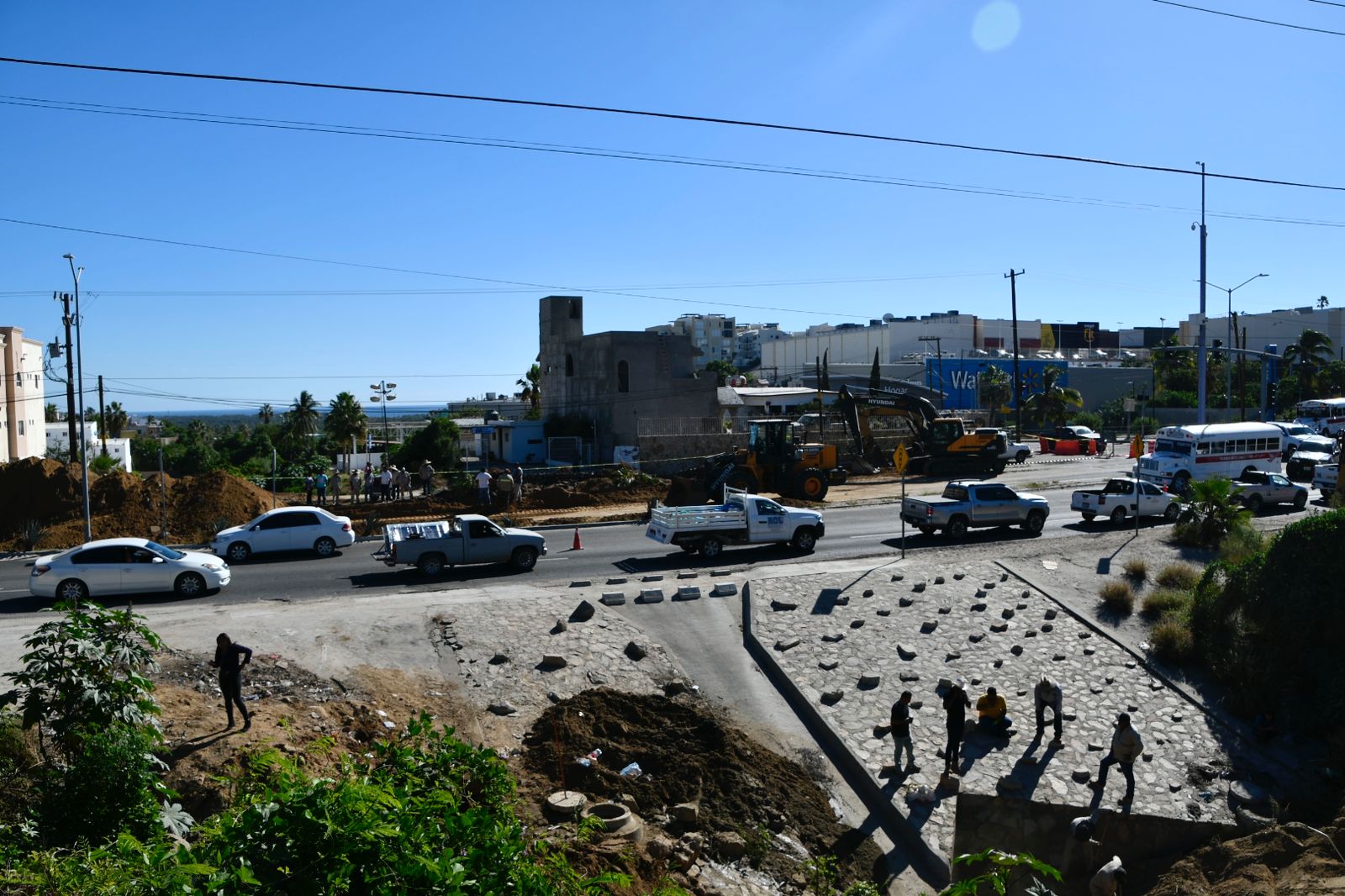 “Tenemos un problema con el acueducto número 1, que se encuentra localizado en la calle Valerio González y la carretera Transpeninsular; el daño que tenemos es una ruptura del acueducto con una profundidad de entre 10 y 12 metros, por lo que hubo la necesidad de hacer una gran excavación. Estimamos que a las 6:00 de la tarde de este martes concluyan los trabajos de reparación del acueducto, y posteriormente iniciaremos con los rellenos para dejar la vialidad en las condiciones que estaba”, refirió Miguel Ángel Ceseña.