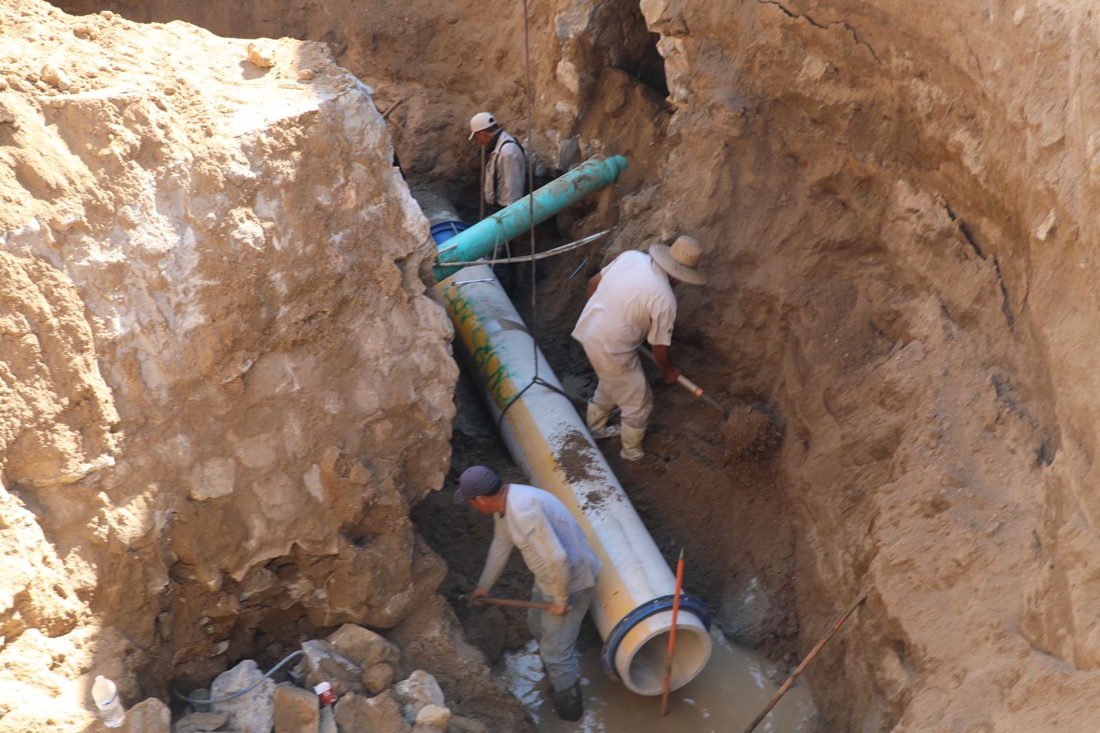 También, el director de Operación y Mantenimiento dio a conocer que a la par de los trabajos de reparación del acueducto se realiza la reparación de la tubería de la red de drenaje sanitario en la zona del Centro que colinda con la colonia 8 de Octubre, Primero de Mayo y Magisterial de San José del Cabo.