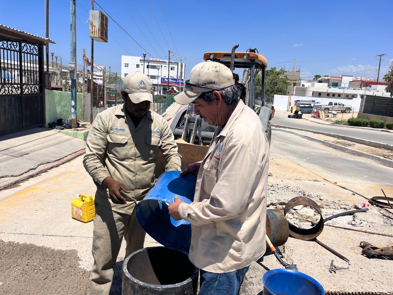 Los Cabos, B.C.S., 02 de sep.- En beneficio de las colonias que dependen de la Estación de Bombeo número 2(Eb2) y para asegurar el tandeo de agua potable principalmente a las colonias Cangrejos l, Agua Clara, y Altamira, el equipo del Agua Potable al frente del ingeniero Ramón Rubio Apodaca trabajó durante 5 horas en la reparación de una fuga en el acueducto de 16 pulgadas de la planta desalinizadora de Cabo San Lucas a la altura de la colonia Los Cangrejos.