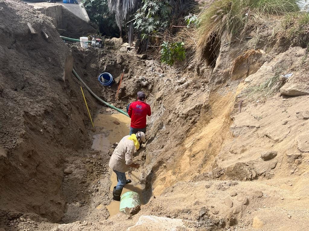 “Nos encontramos en el punto de Sierra Dorada, sobre la carretera Transpeninsular, ya que se nos reportó una fuga de agua que se deriva de la ruptura del acueducto de Cabo Bello a Lomas del Sol. Estos trabajos nos llevarán de 5 a 6 horas, y posteriormente estaríamos retomando el suministro hacia el sector de Lomas del Sol, Mesa Colorada, Paraíso del Sol, Gastélum y Caribe, que son los sectores que suministramos con este acueducto”, explicó el director de Operación y Mantenimiento.