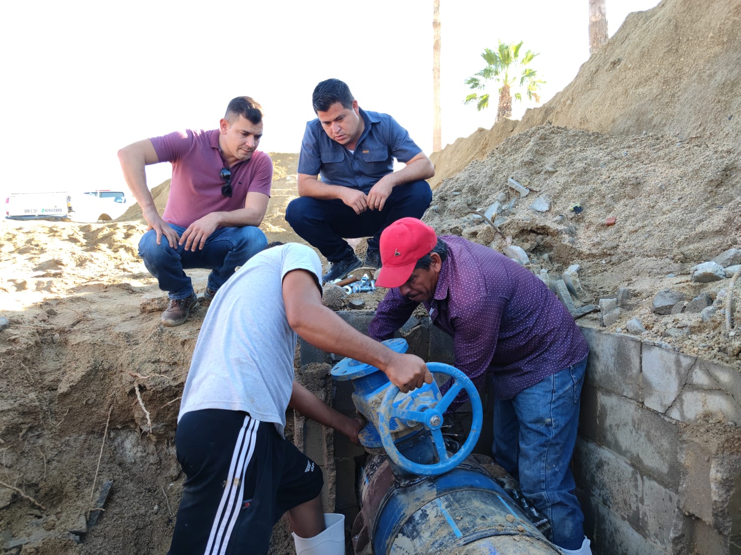 Los Cabos, B.C.S., 07 Nov.- El equipo de Operación y Mantenimiento del Organismo Operador Municipal del Sistema de Agua Potable, Alcantarillado y Saneamiento de Los Cabos, trabajaron este fin de semana a marchas forzadas para restablecer el servicio de agua potable a los usarios que dependen del tramo de Cerro Colorado hasta Twin Dolphin.